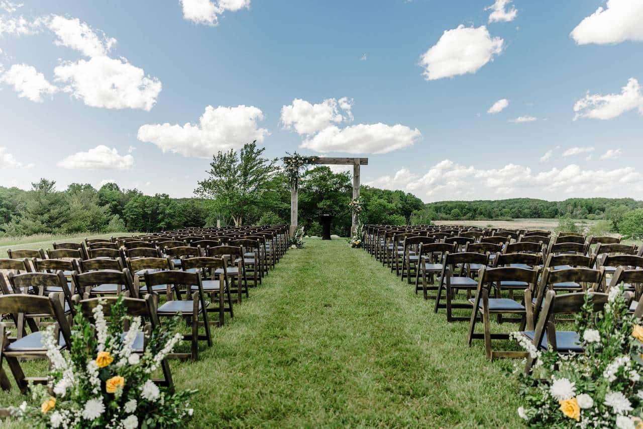 - Multiple Ceremony Locations: Choose from four distinct ceremony settings—North Point hilltop, courtyard pergola, barn interior, or covered patio—each with its own arbor and florals included